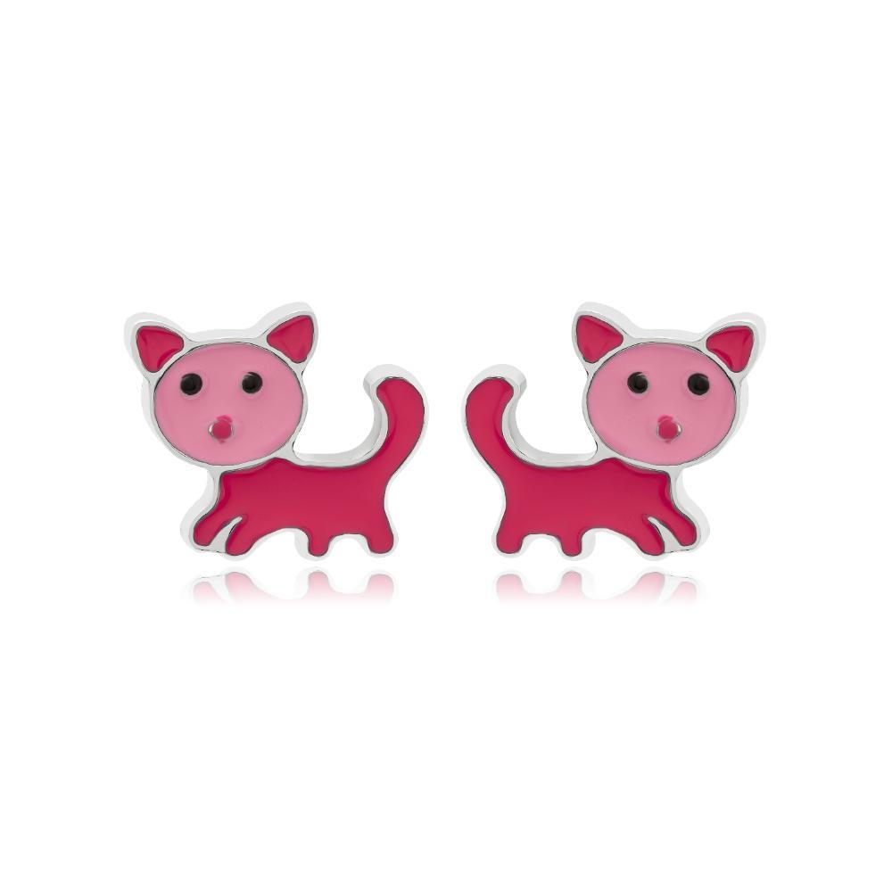 Earrings with pink cats which are made of silver (925°).