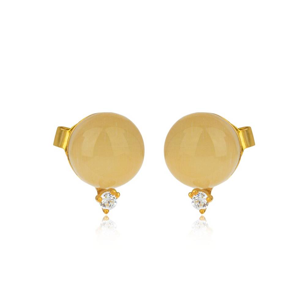 Γυναικεία σκουλαρίκια με πέτρα σε χρωματισμό ορυκτής Γύψου και ζιργκόν . Τα σκουλαρίκια είναι φτιαγμένα από Επιχρυσωμένο Ασήμι (925°) .