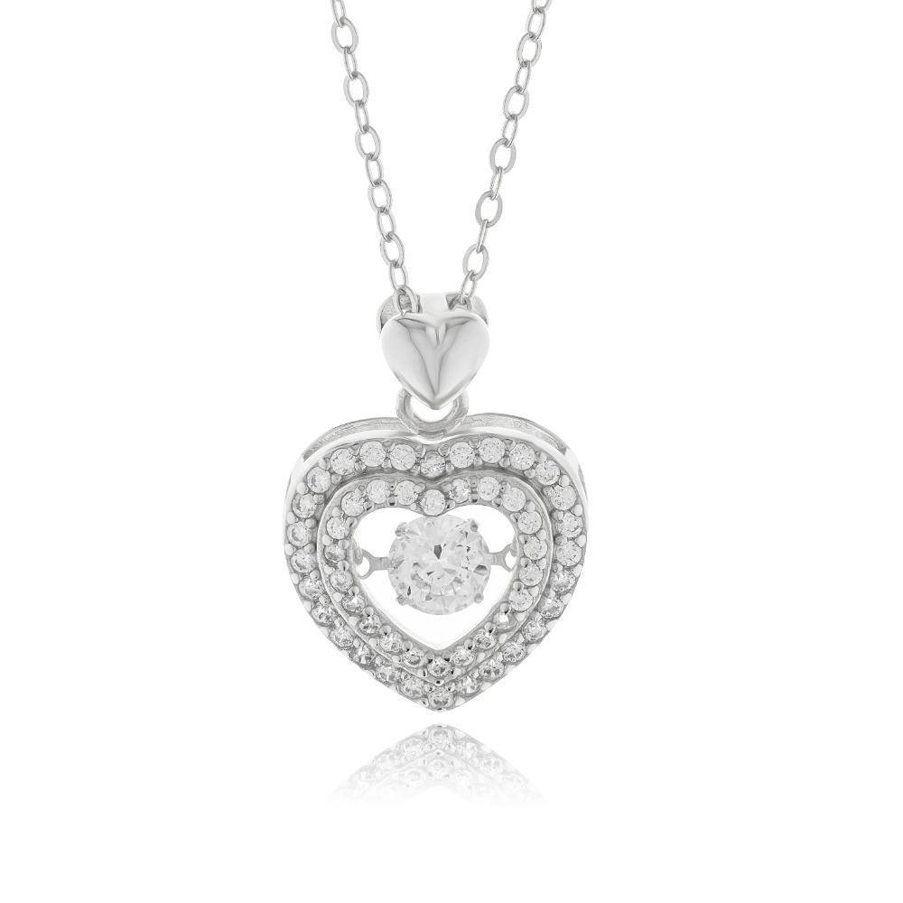 Women’s heart necklace with white silver zircons (925°).