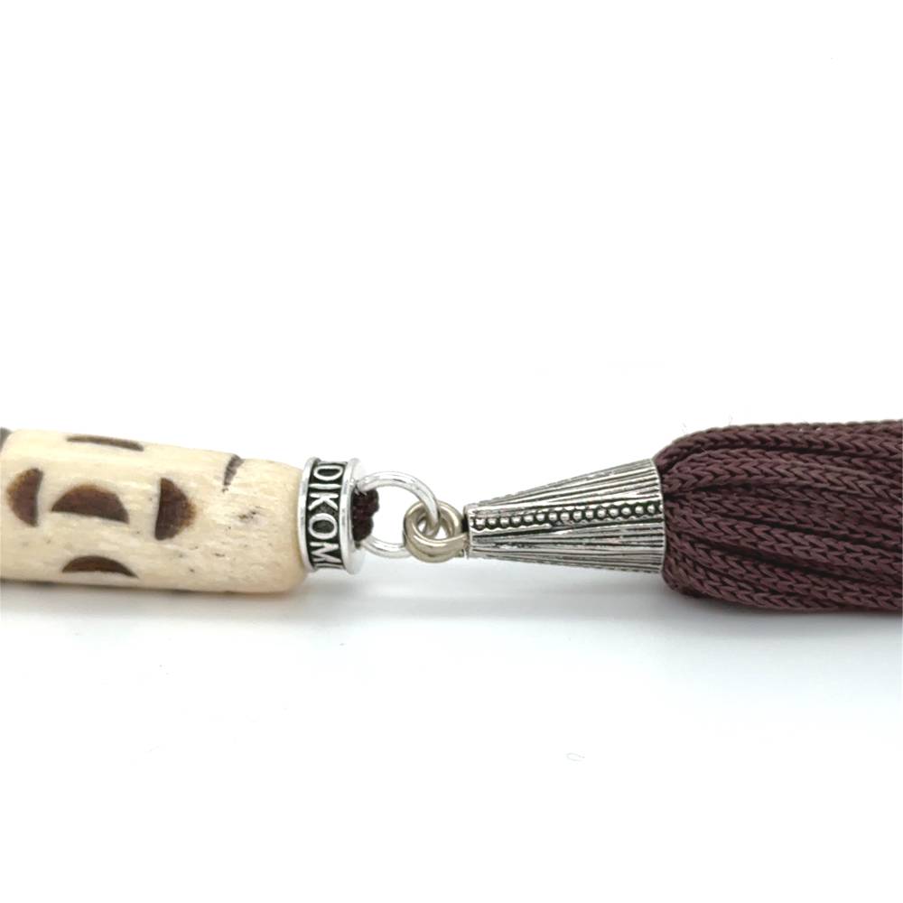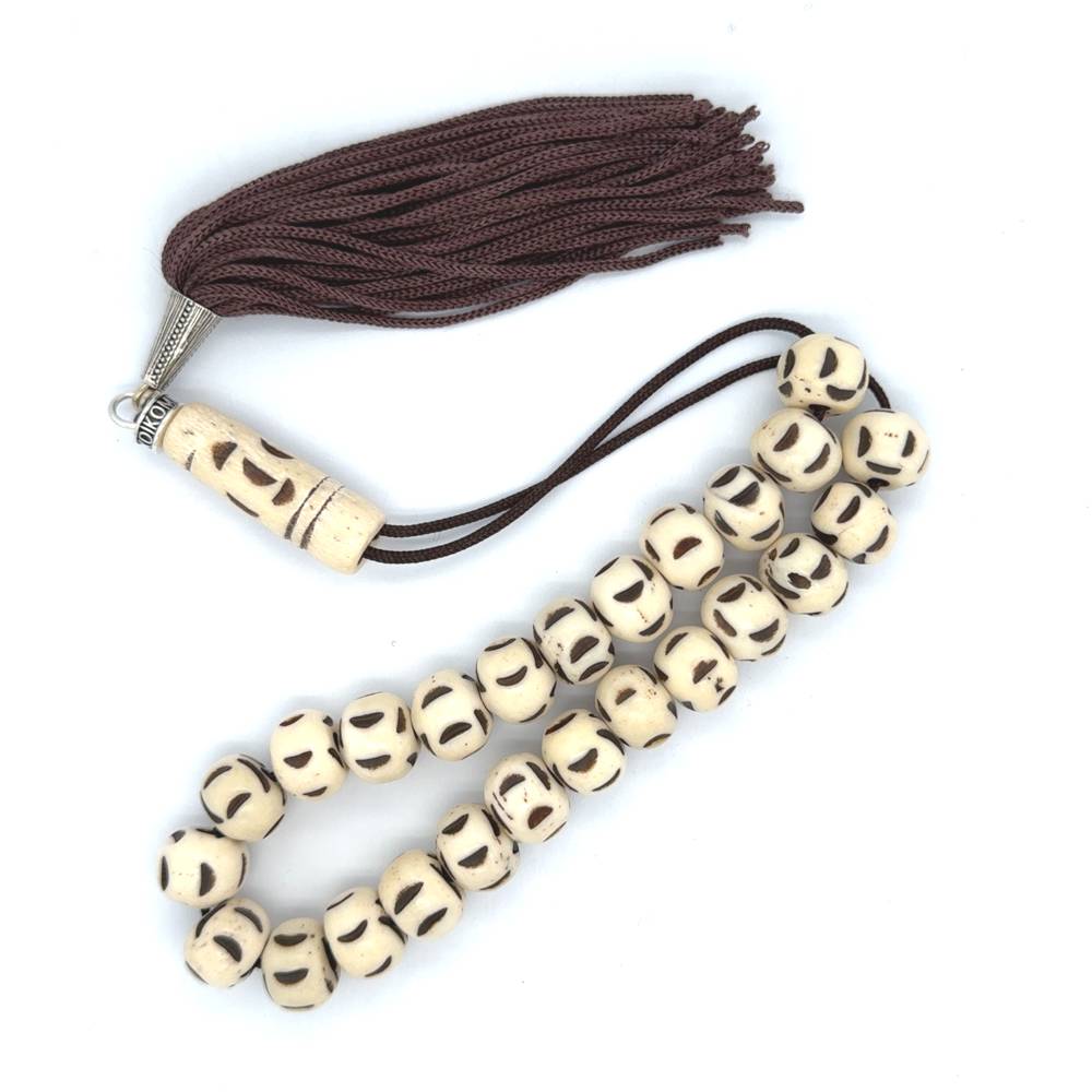ΚΟΜΠΟΛΟΙ Κόκκαλο καμήλας λευκό σκαλιστό με φούντα (25 χάντρες)