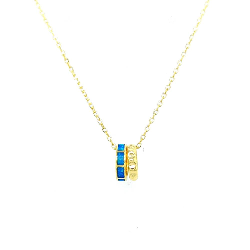 Κολιέ γυναικείο, ασήμι (925°), κρίκοι με τεχνητό opal, επιχρυσωμένο