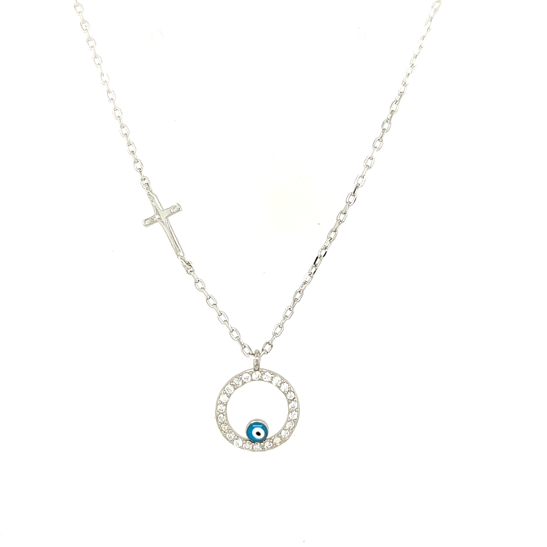 Κολιέ γυναικείο, ασήμι (925°), μάτι και σταυρός