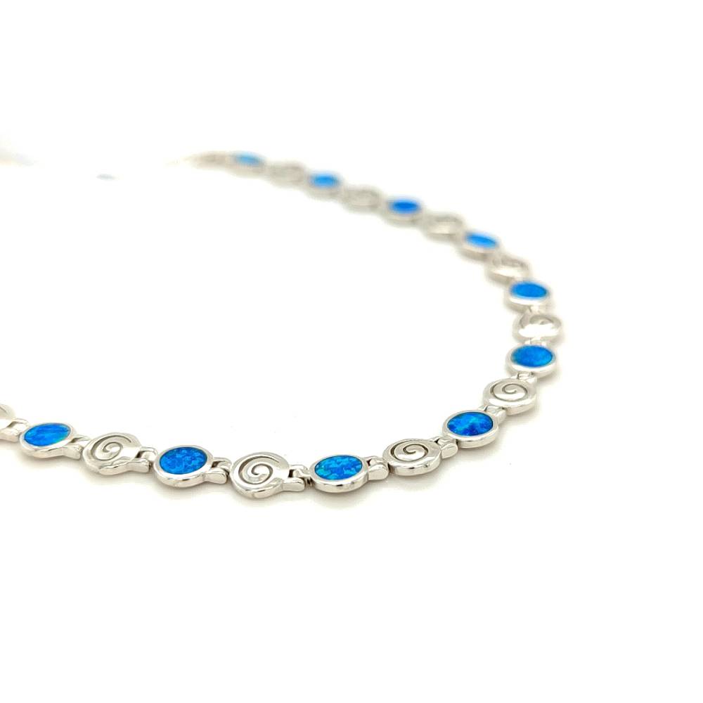 Κολιέ γυναικείο από ασήμι (925°) με σύμβολο Σπείρα με τεχνητό opal. Η Σπείρα είναι Αρχαιοελληνικό Σύμβολο Ζωής και είναι ένα από τα αρχαιότερα σύμβολα και χρησιμοποιείται από την παλαιολιθική εποχή στον Ελλαδικό χώρο. Ένα από τα πιο μυστηριώδη γεωμετρικά σχέδια που βρίσκουμε σε όλο τον πλανήτη. Έχει εντοπιστεί σε αμέτρητους αμφορείς, αγάλματα, κοσμήματα και σε πολλά άλλα αντικείμενα.