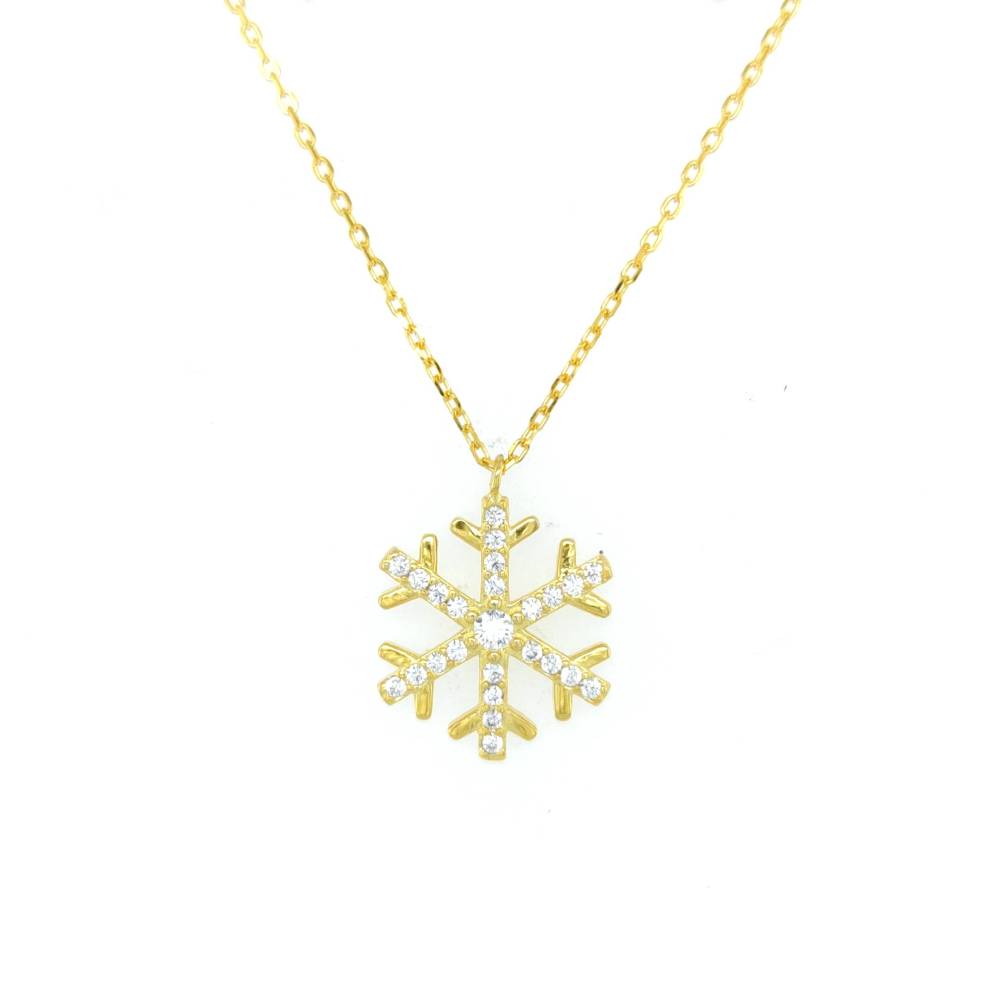 Κολιέ γυναικείο χιονονιφάδα με ζιργκόν, επιχρυσωμένο ασήμι (925°)