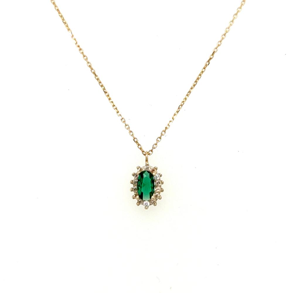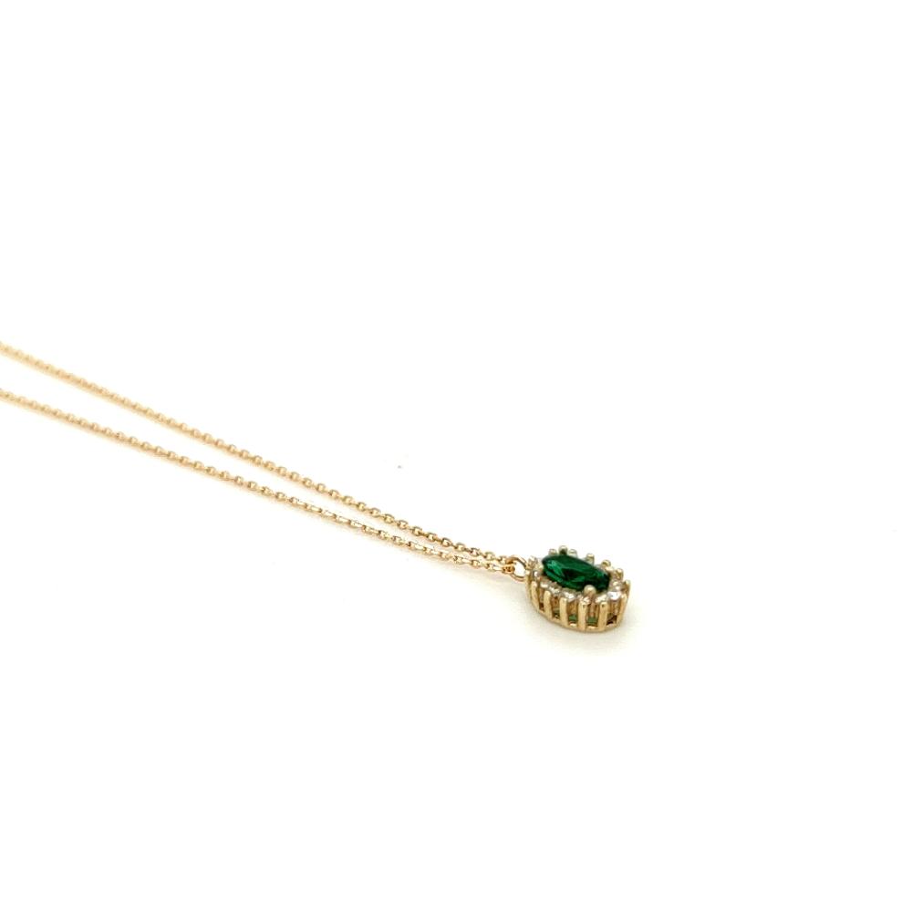 Κολιέ γυναικείο, χρυσός K14 (585°) , ροζέτα με πράσινο ζιργκόν