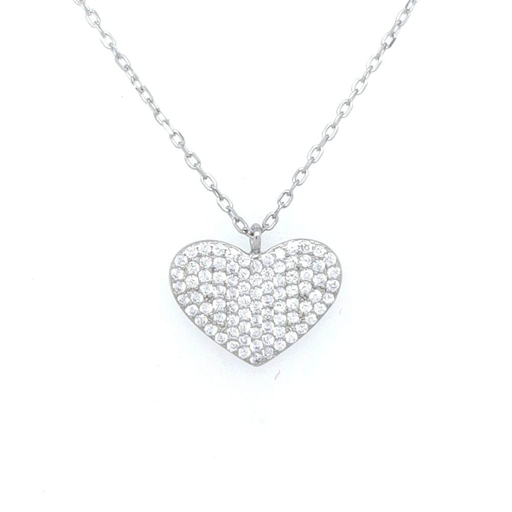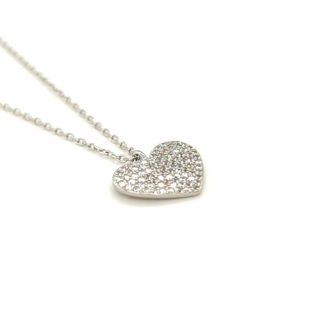 Γυναικείο κολιέ με καρδιά η οποία κοσμείται από ζιργκόν , φτιαγμένο από ασήμι (925°).