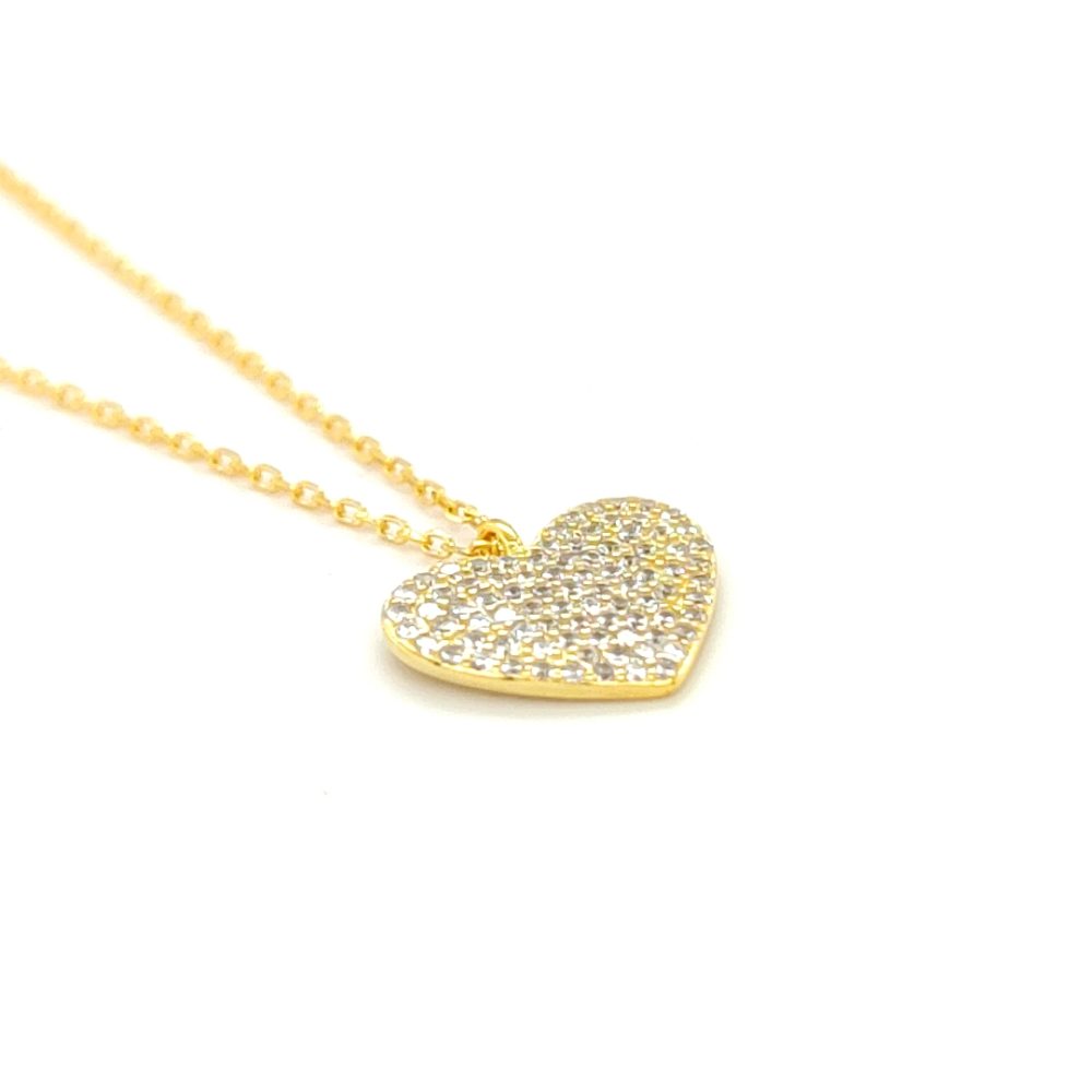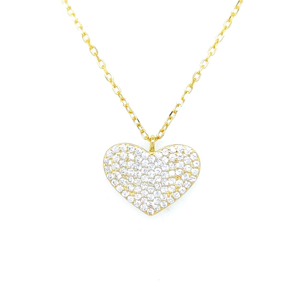 Κολιέ γυναικείο καρδιά με ζιργκόν, επιχρυσωμένο ασήμι (925°)