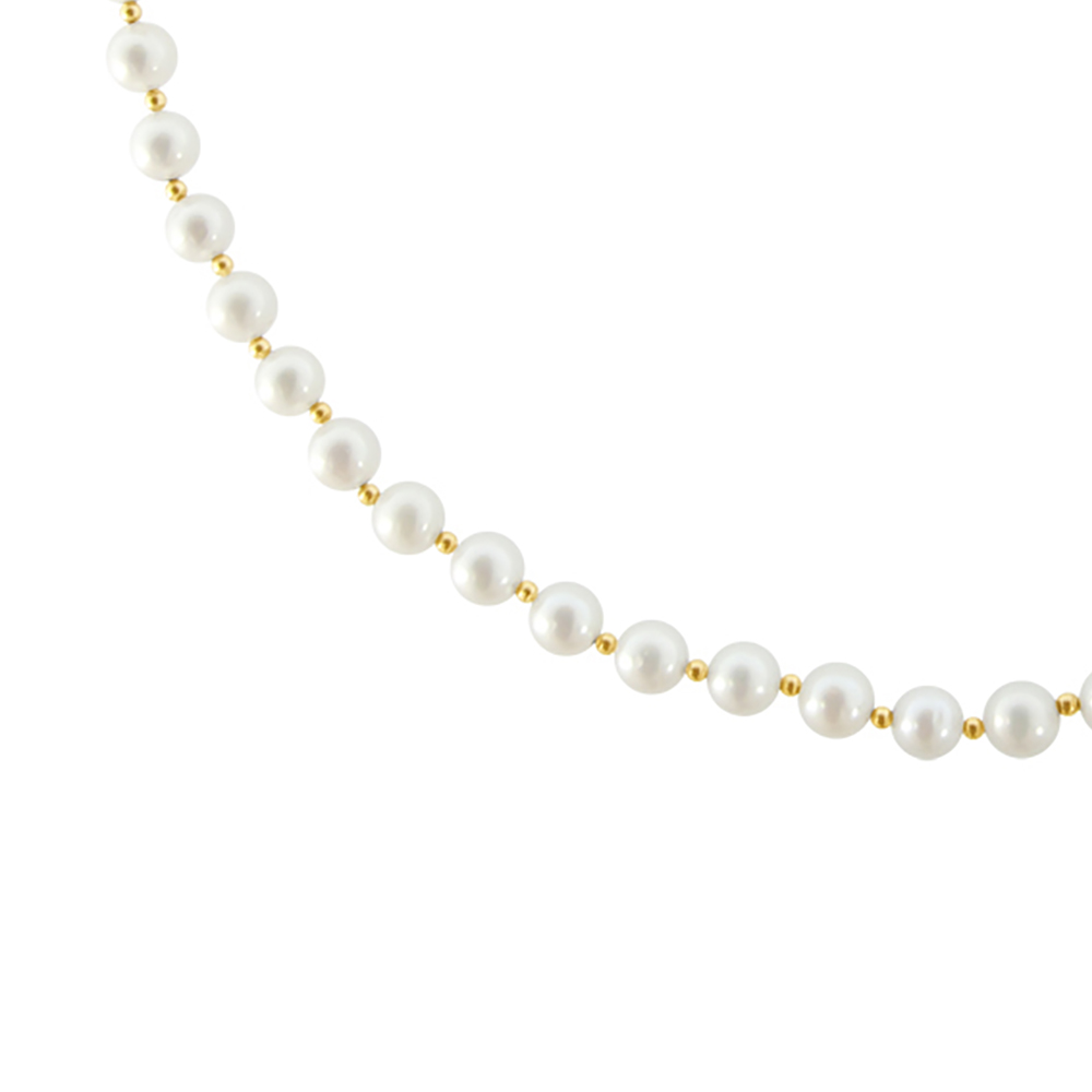 Κολιέ γυναικείο με λευκά μαργαριτάρια 6-6,5 mm και χρυσά στοιχεία Κ14 (585°)