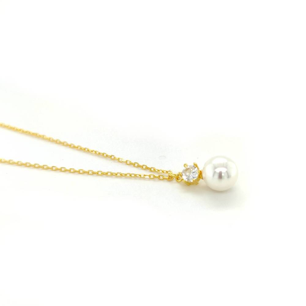 Κολιέ γυναικείο με πέρλα και ζιργκόν, επιχρυσωμένο ασήμι (925°)