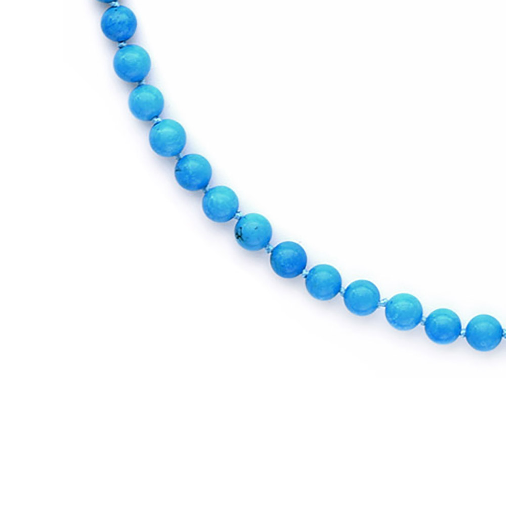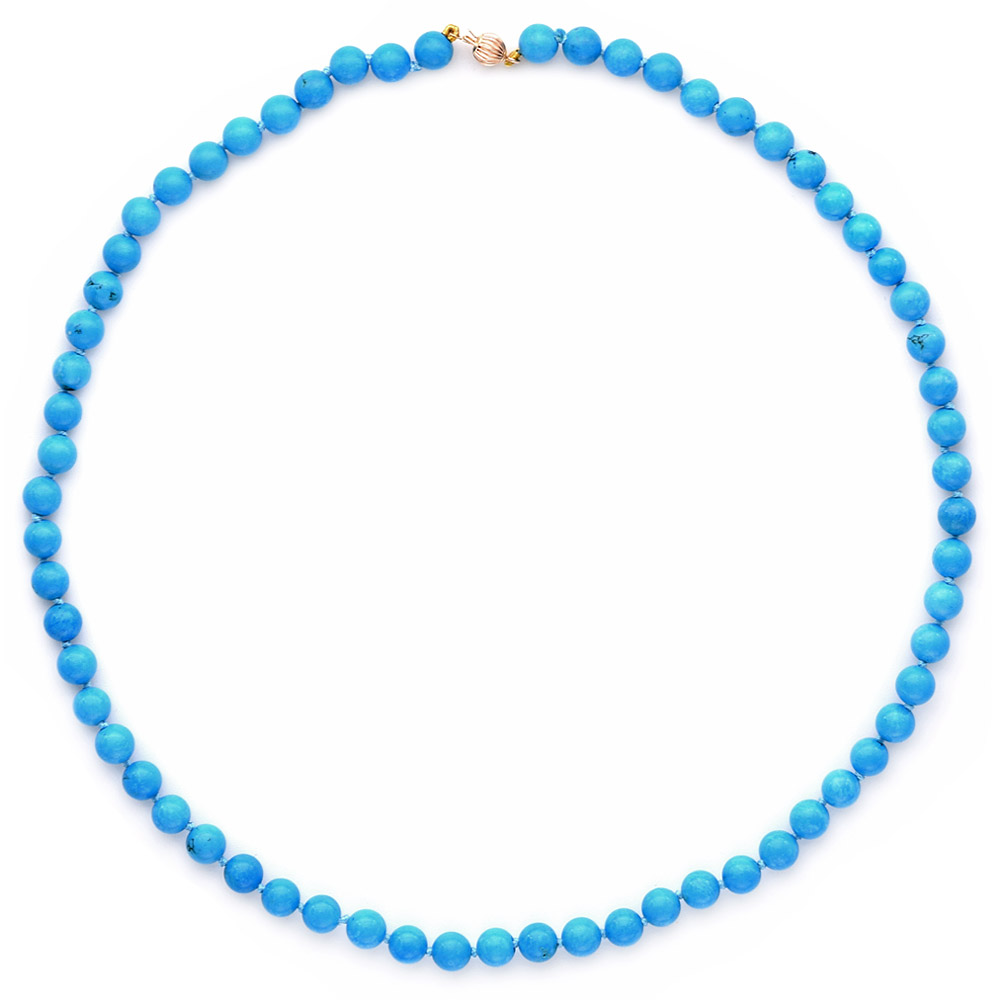 Ένα γυναίκειο κολιέ με τυρκουάζ 6 mm και χρυσό κούμπωμα K14 (585°).