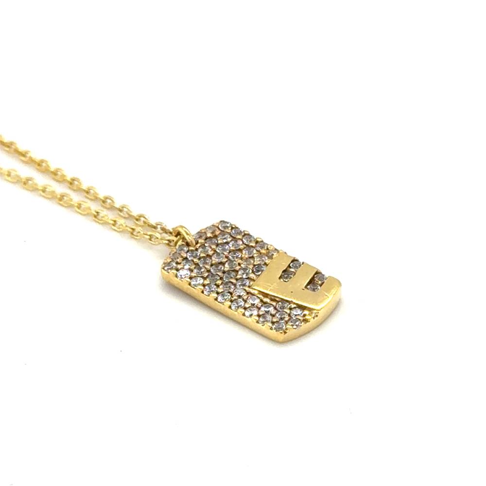 Κολιέ γυναικείο, μονόγραμμα Ε με λευκά ζιργκόν, φτιαγμένο από χρυσό Κ9 (375°).