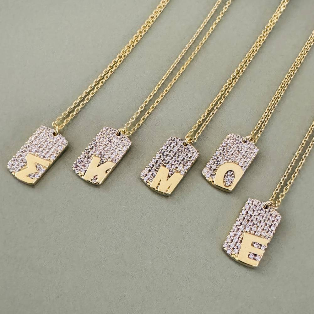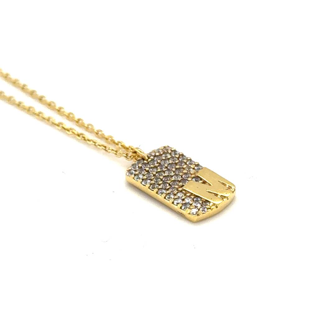 Κολιέ γυναικείο, μονόγραμμα M με λευκά ζιργκόν, φτιαγμένο από χρυσό Κ9 (375°).