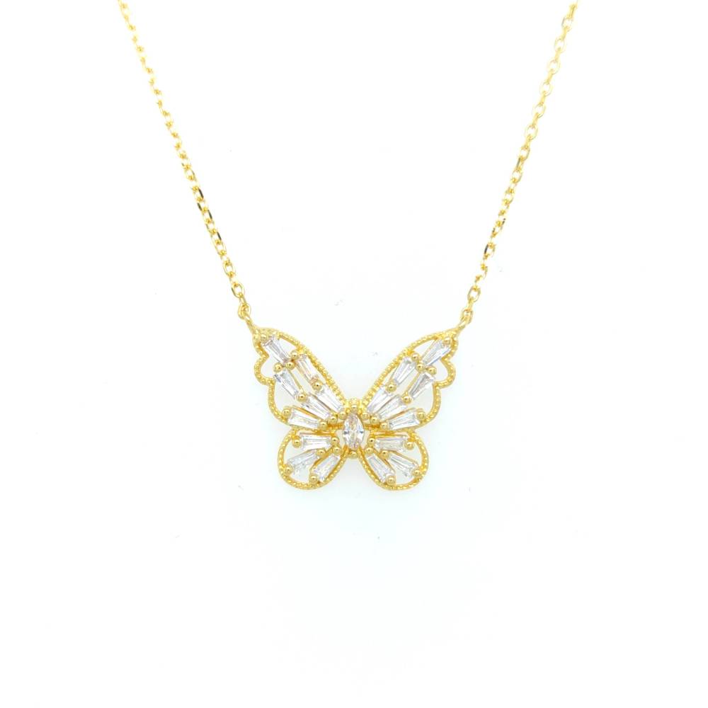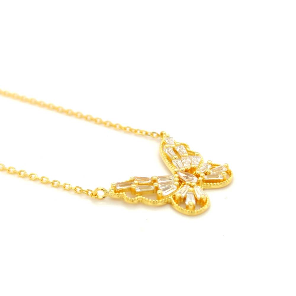 Γυναικείο κολιέ με πεταλούδα η οποία κοσμείται από ζιργκόν, φτιαγμένο από επιχρυσωμένο ασήμι (925°).