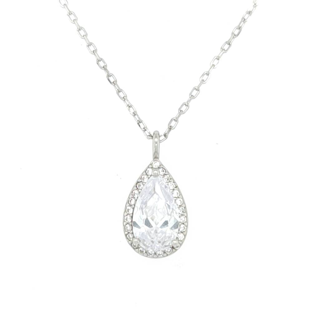 Γυναικείο κολιέ από ασήμι (925°) με ροζέτα σε σχήμα δάκρυ με ζιργκόν.