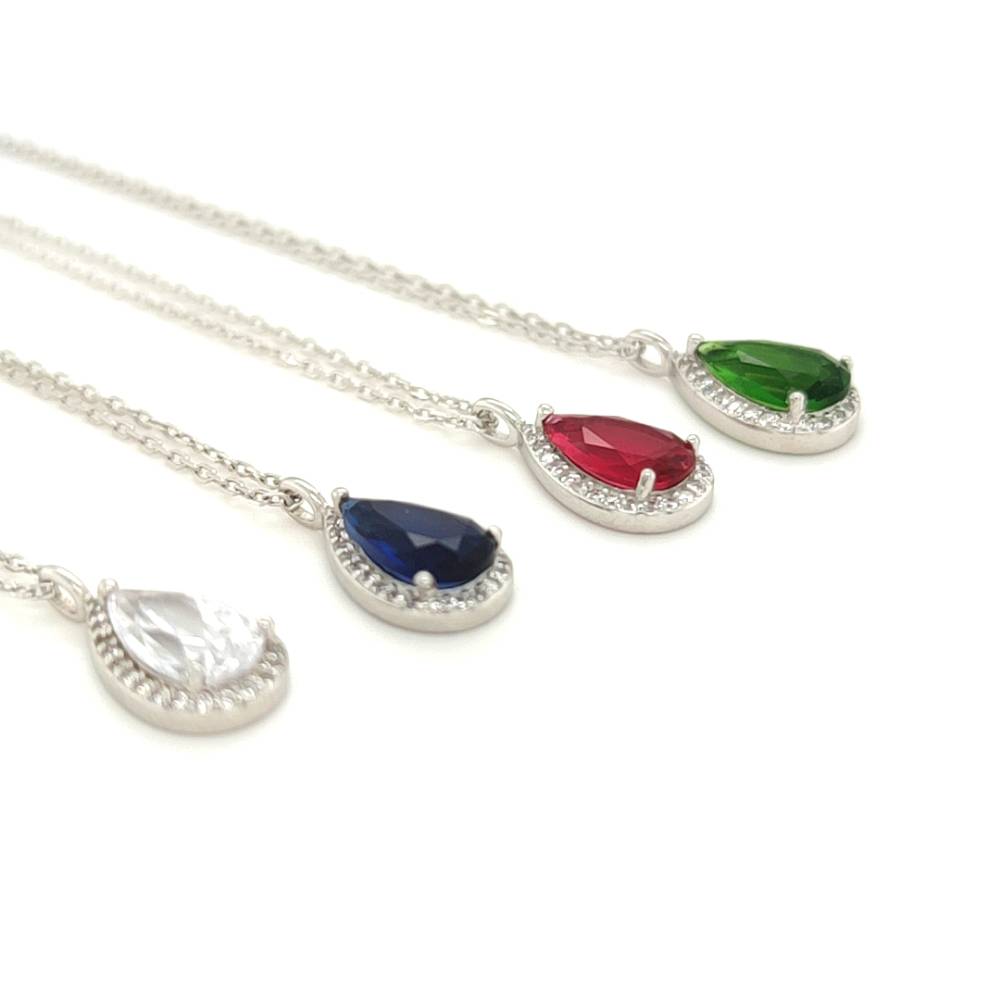 Κολιέ γυναικείο ροζέτα δακρυ με λευκό ζιργκόν, ασήμι (925°)