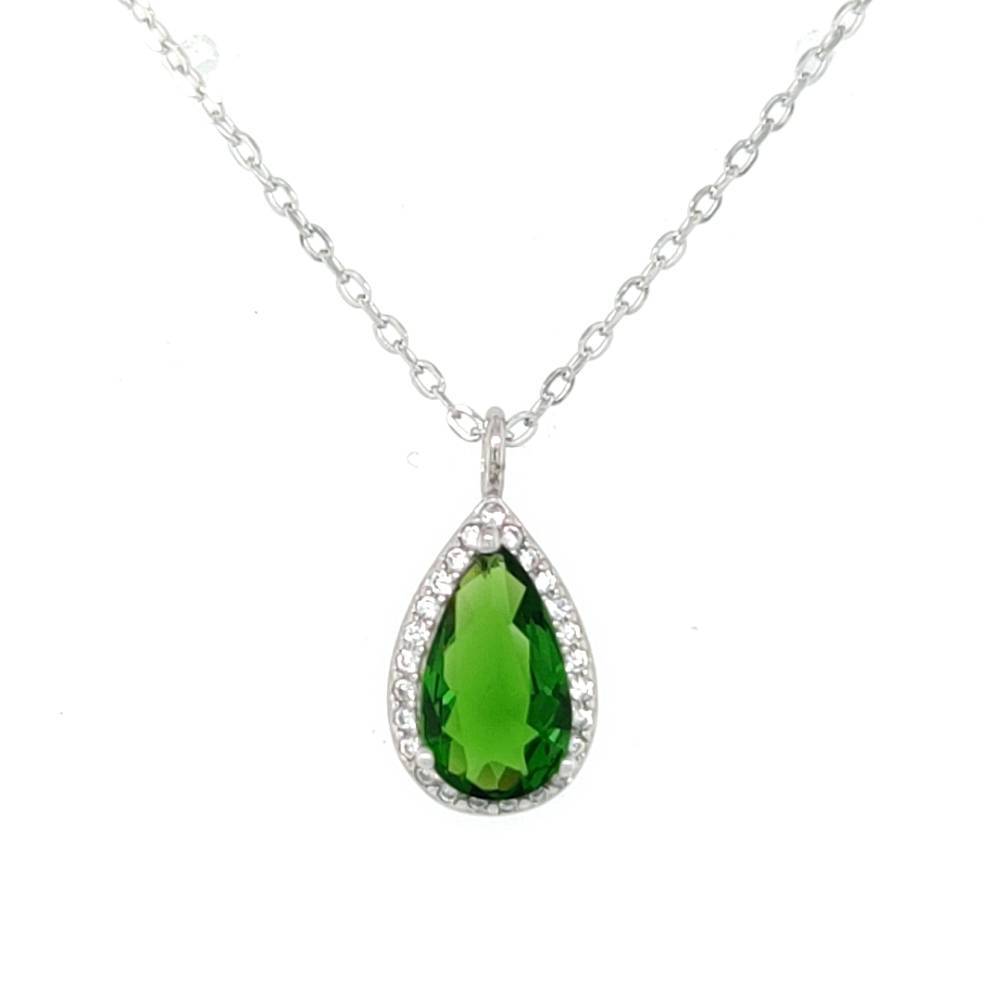 Γυναικείο κολιέ από ασήμι (925°) σε σχήμα δάκρυ με ροζέτα από πράσινο ζιργκόν.