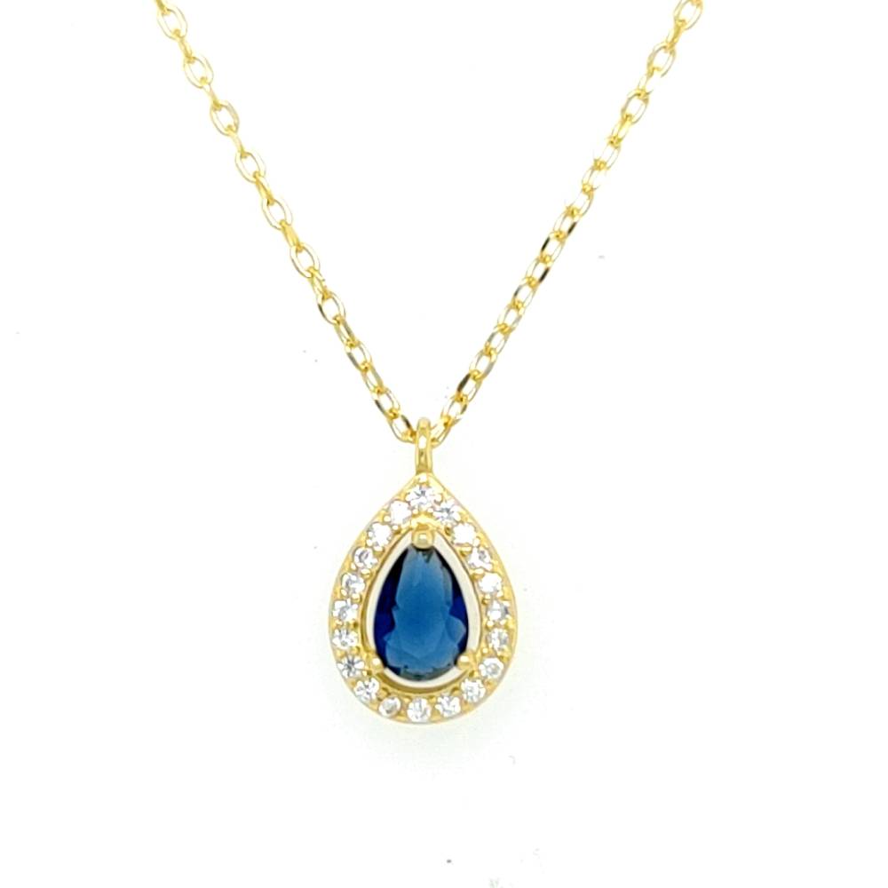 Κολιέ γυναικείο ροζέτα με μπλε ζιργκόν, επιχρυσωμένο ασήμι (925°)