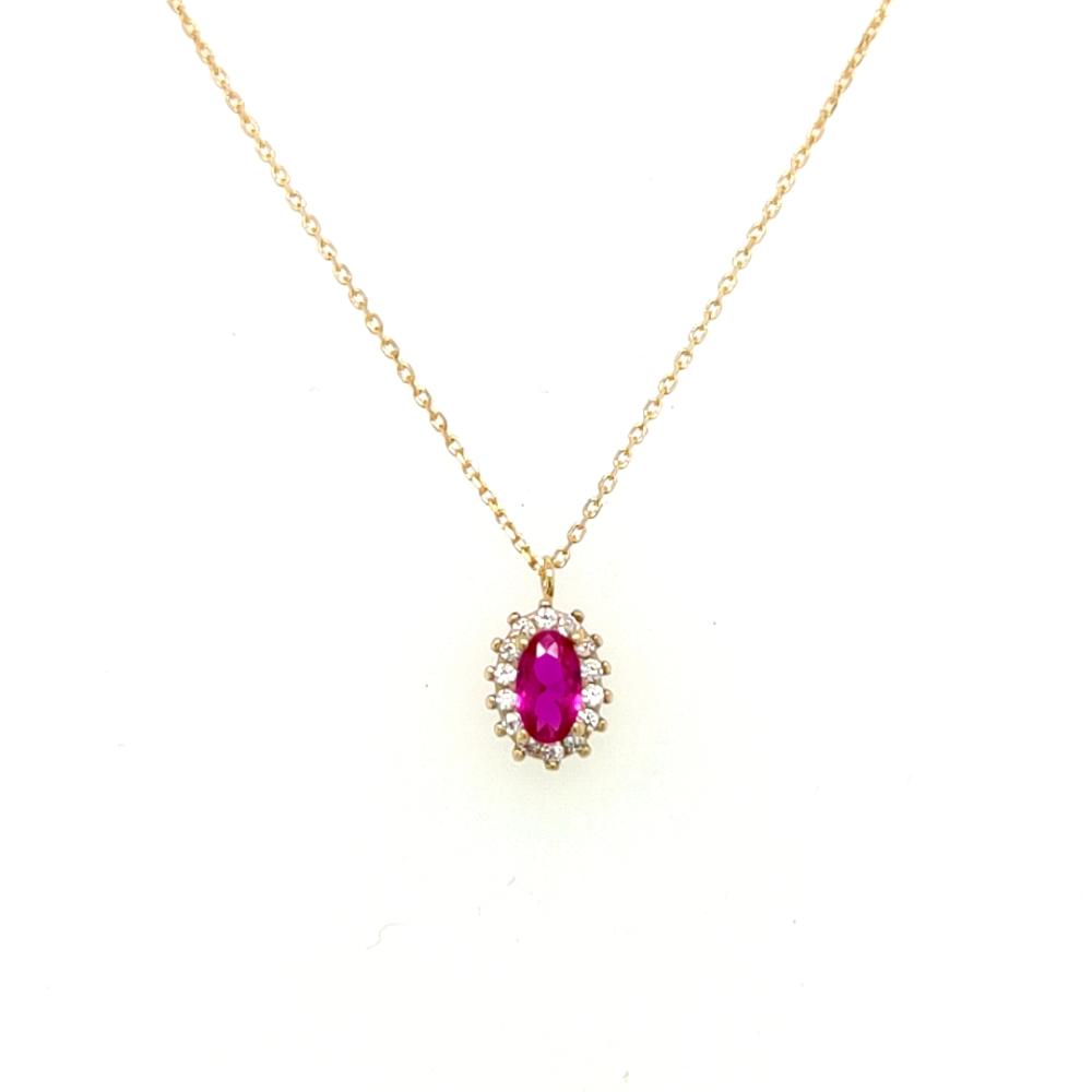 Ένα γυναικείο κολιέ με ροζέτα με κόκκινο ζιργκόν από χρυσό K14 (585°).
