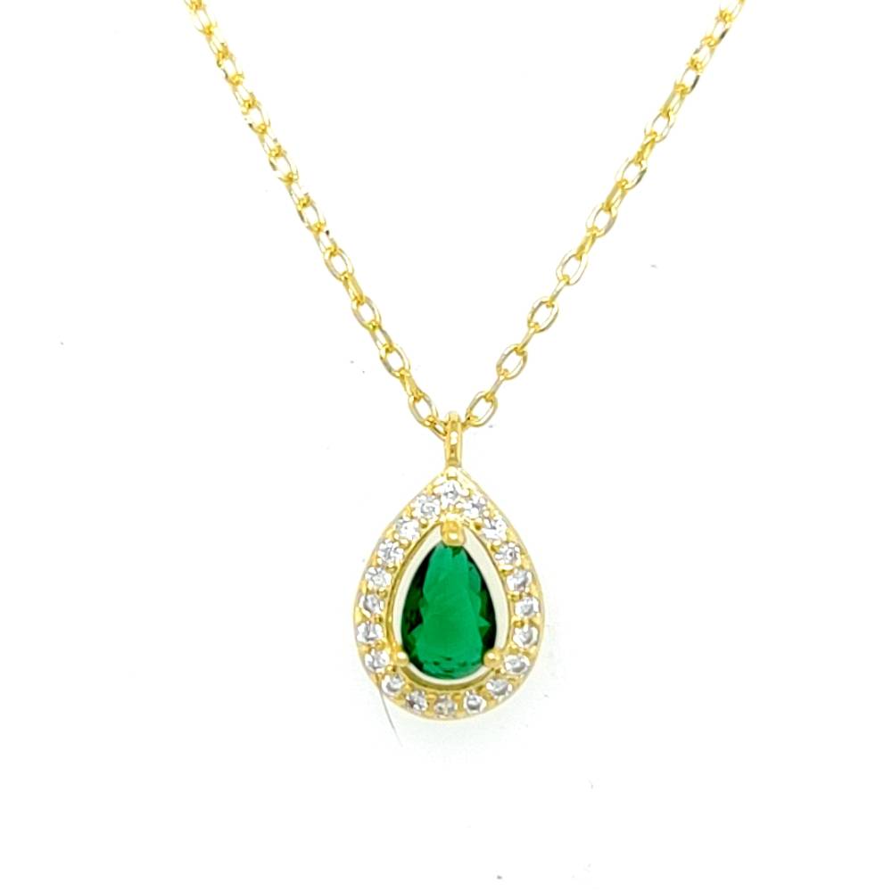 Κολιέ γυναικείο ροζέτα με πράσινο ζιργκόν, επιχρυσωμένο ασήμι (925°)