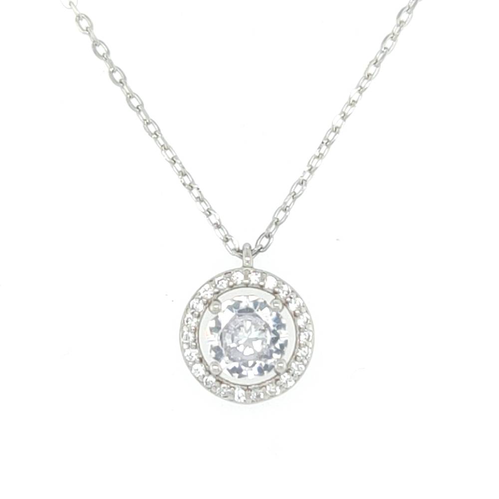 Γυναικείο κολιέ από ασήμι (925°) με στρογγυλή ροζέτα από λευκό κρύσταλλο και ζιργκόν.