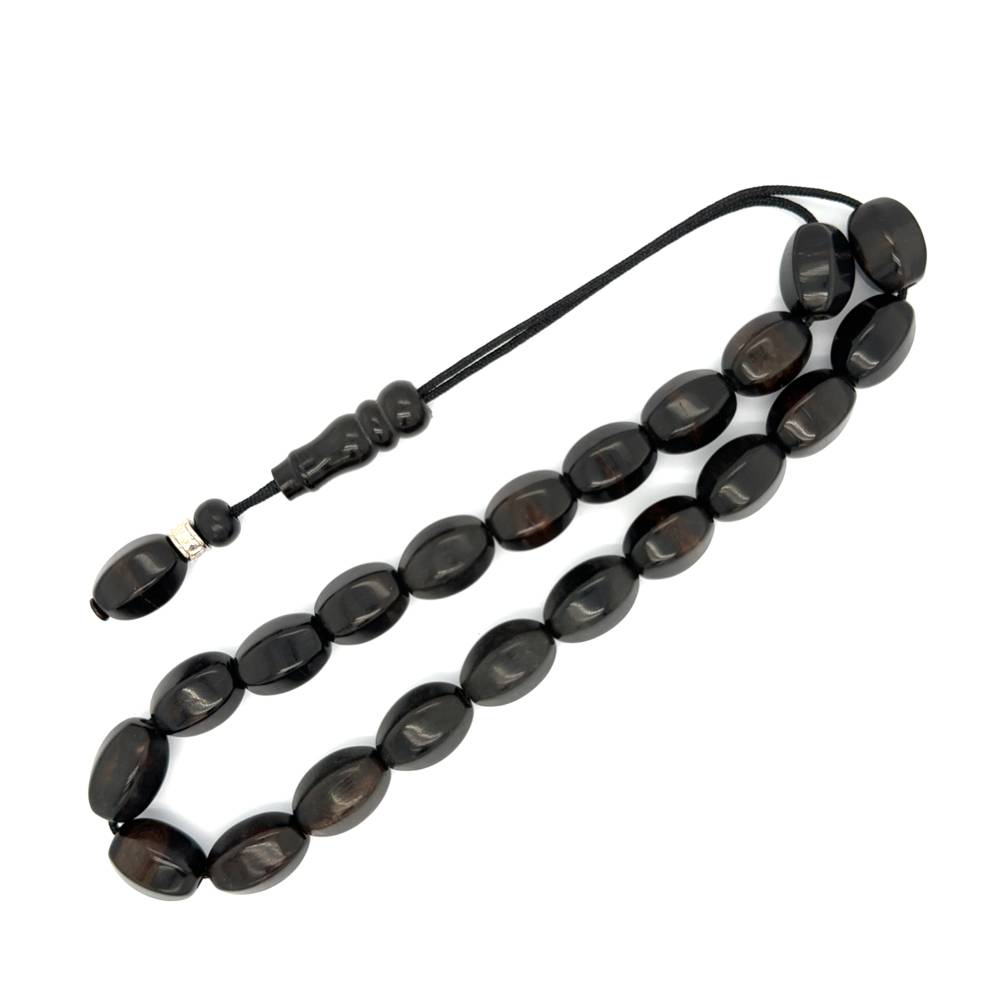 The horn beads are included between those with the longer history in the depths of centuries. Hundreds years ago, people used the horns from animals in order to make items for the covering of their daily needs, for decorative but also for religious reasons. They were making tools, jewels that sculptured them with religious symbols. For the making of kombolois beads it is mainly used the horn from one specie of cattle, the Asiatic yak, and horns from bull and reindeer. The horn beads are durable and soft in touch, they cannot be smashed and we usually find them in brown colour. With the colouring by herbs, we can find beads in deep red, brown, antic and black.