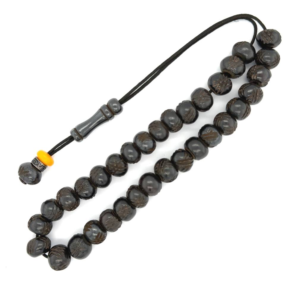 Bone is also used in the making of kombolois. A few centuries ago, people were making jewels and many other items for religious purposes. They were processing bones in a particular way creating thus pieces of art. The bones komboloys are qualitative and durable in use. The bone beads are from cattle animals that live in Asia, as well as from camels and elephants. In some of them, we find Tibetan graphs and colouring designs. The Asians sculptured with the hand many graphs on the beads from their daily life and religion.