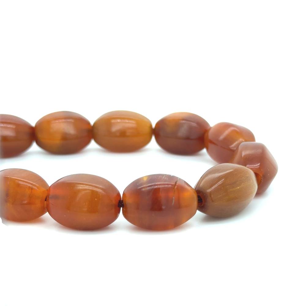 The horn beads are included between those with the longer history in the depths of centuries. Hundreds years ago, people used the horns from animals in order to make items for the covering of their daily needs, for decorative but also for religious reasons. They were making tools, jewels that sculptured them with religious symbols. For the making of kombolois beads it is mainly used the horn from one specie of cattle, the Asiatic yak, and horns from bull and reindeer. The horn beads are durable and soft in touch, they cannot be smashed and we usually find them in brown colour. With the colouring by herbs, we can find beads in deep red, brown, antic and black.