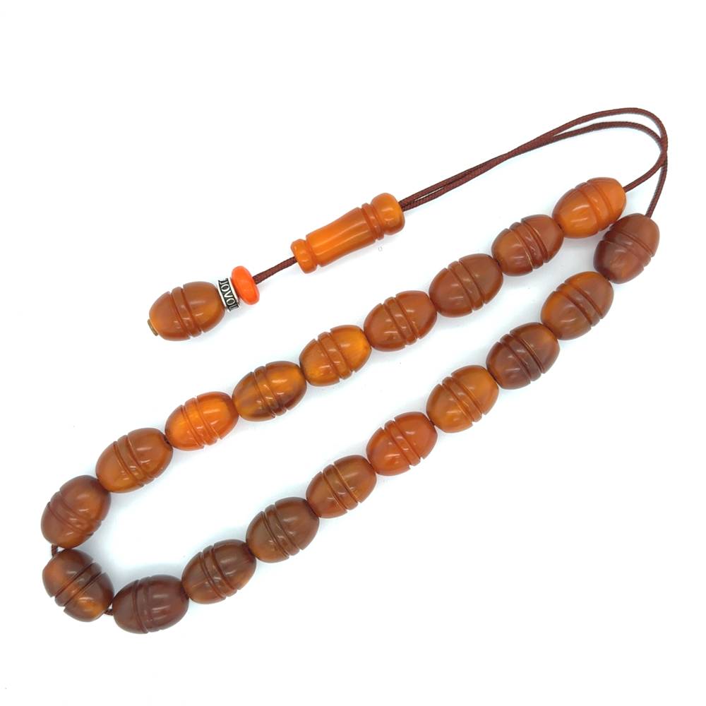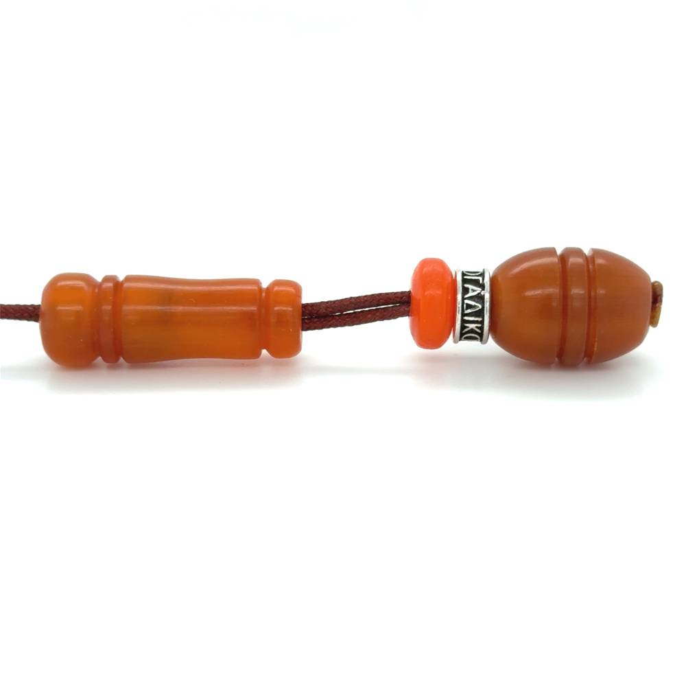 The horn beads are included between those with the longer history in the depths of centuries. Hundreds years ago, people used the horns from animals in order to make items for the covering of their daily needs, for decorative but also for religious reasons. They were making tools, jewels that sculptured them with religious symbols. For the making of kombolois beads it is mainly used the horn from one specie of cattle, the Asiatic yak, and horns from bull and reindeer. The horn beads are durable and soft in touch, they cannot be smashed and we usually find them in brown colour. With the colouring by herbs, we can find beads in deep red, brown, antic and black.
