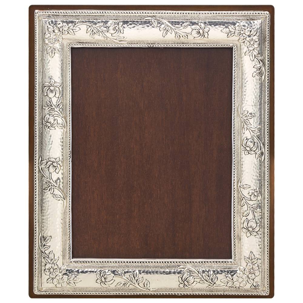 Μια κορνίζα για φωτογραφία 13 x 18 cm απο ασήμι (925°) με ξύλινη πλάτη και στήριγμα σε καφέ χρώμα.