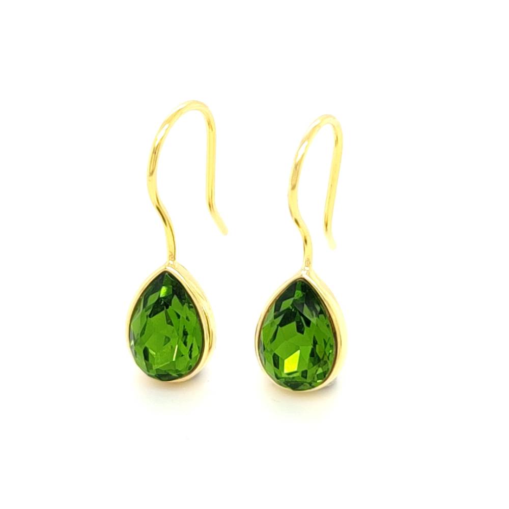 Κρεμαστά σκουλαρίκια γυναικεία επιχρυσωμένα, με κρύσταλλο σε πράσινη απόχρωση- ασήμι (925°)