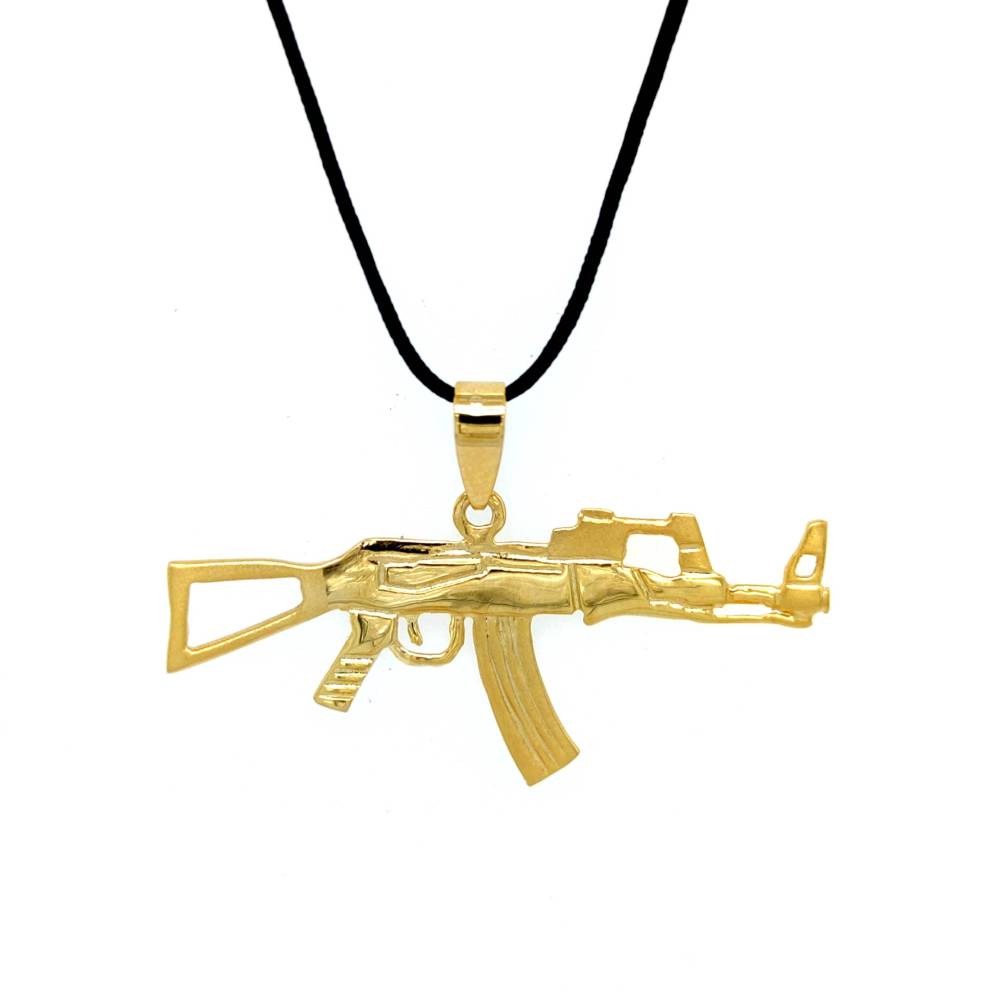 Men’s pendant weapon made of gold K14 (585°), which is accompanied by a black cord.
