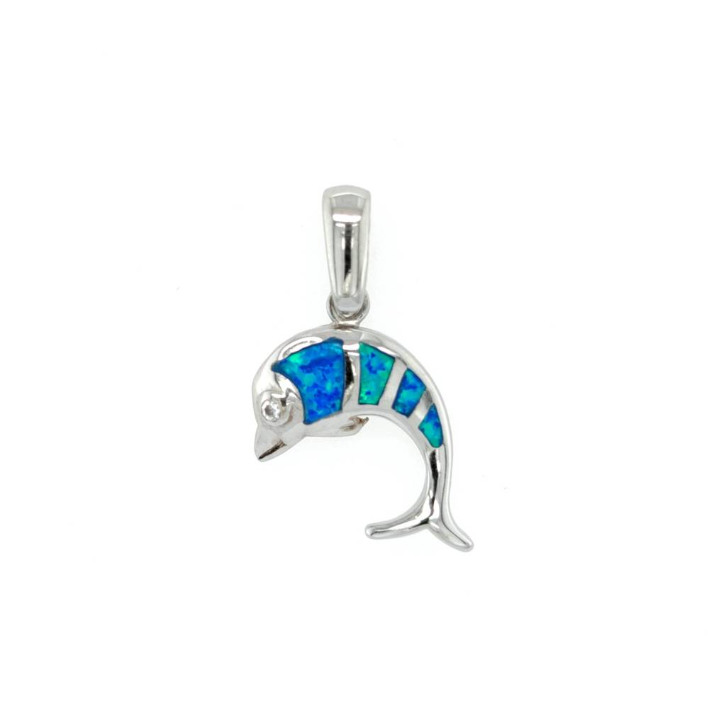 Μενταγιόν, ασήμι (925°), Δελφίνι με ζιργκόν και τεχνητό opal
