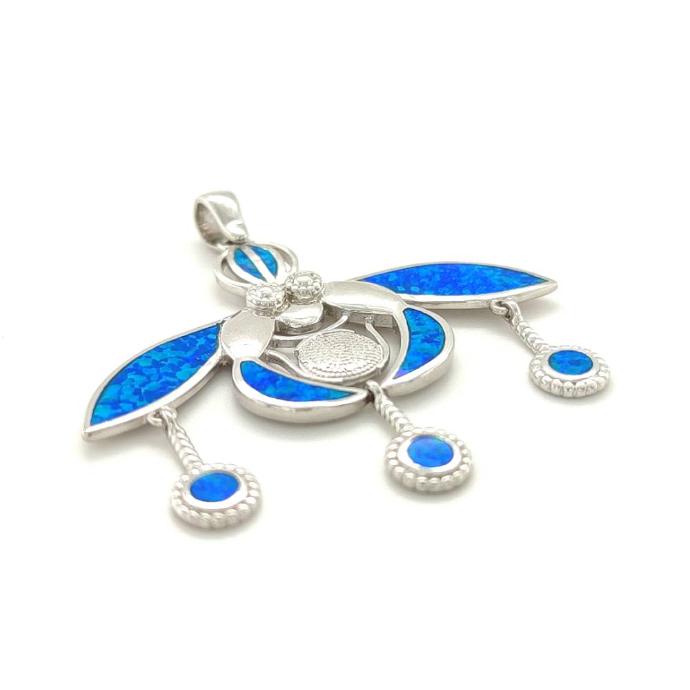 Μενταγιόν, ασήμι (925°), Μινωική Μέλισσα με τεχνητό opal, (5,2 x 4,4 cm)