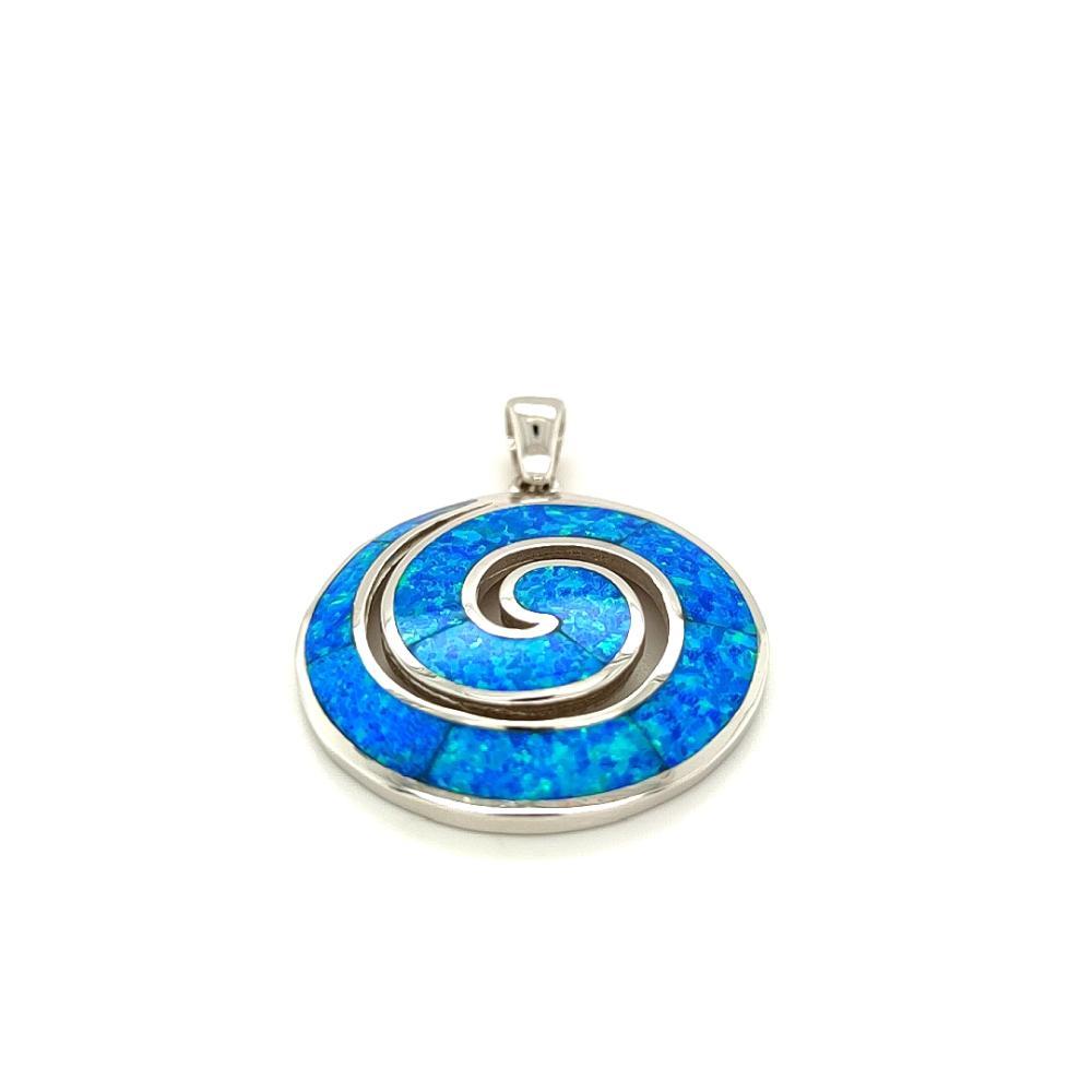 Γυναικείο μενταγιόν από ασήμι (925°) με σύμβολο Σπείρα και τεχνητό opal. Η Σπείρα είναι Αρχαιοελληνικό Σύμβολο Ζωής και είναι ένα από τα αρχαιότερα σύμβολα και χρησιμοποιείται από την παλαιολιθική εποχή στον Ελλαδικό χώρο. Ένα από τα πιο μυστηριώδη γεωμετρικά σχέδια που βρίσκουμε σε όλο τον πλανήτη. Έχει εντοπιστεί σε αμέτρητους αμφορείς, αγάλματα, κοσμήματα και σε πολλά άλλα αντικείμενα.