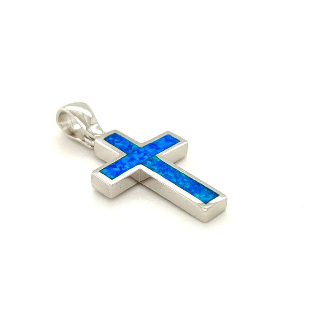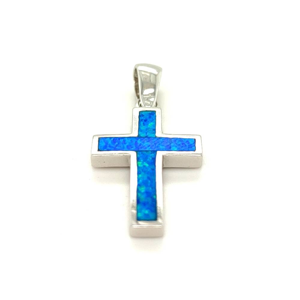 Μενταγιόν, ασήμι (925°), Σταυρός με τεχνητό opal