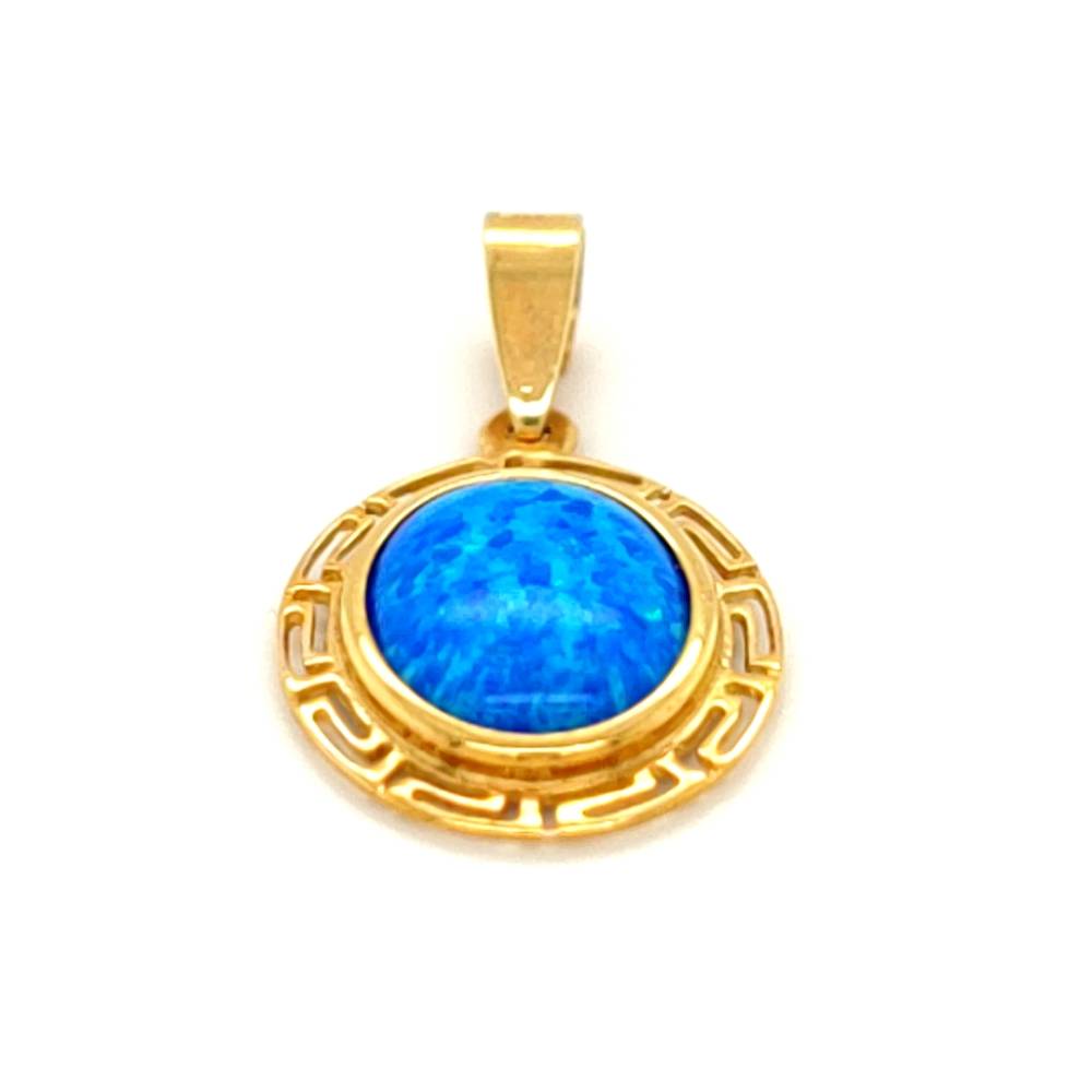 Μενταγιόν, χρυσός K14 (585°), τεχνητό opal με στεφάνι μαίανδρου οβάλ
