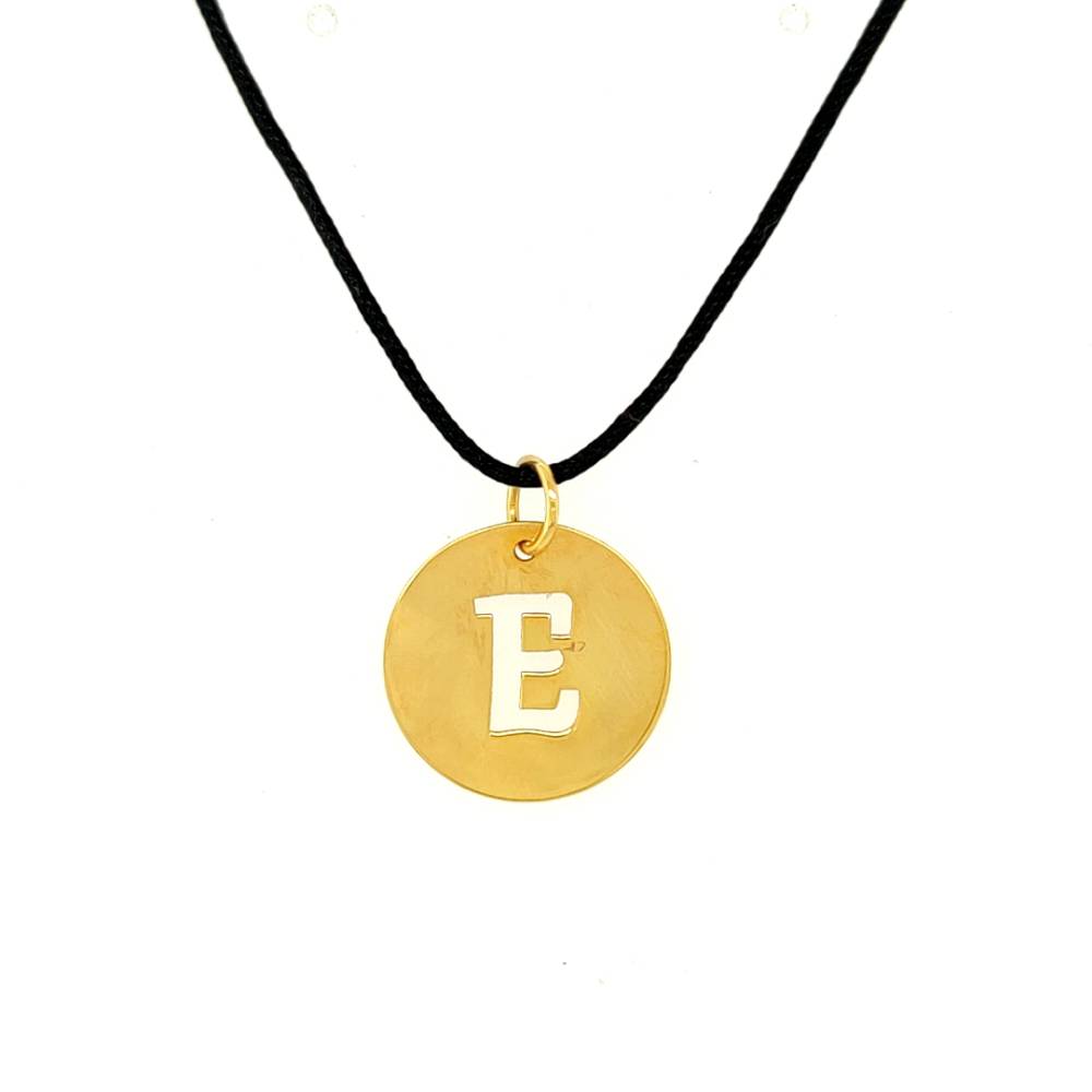 Μενταγιόν μονόγραμμα Ε , με μαύρο κορδόνι-Χρυσός Κ14 (585°)-