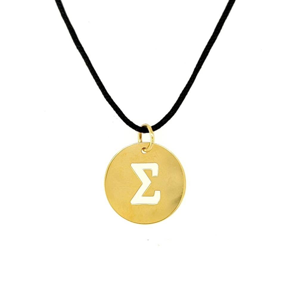 Μενταγιόν μονόγραμμα Σ , με μαύρο κορδόνι-Χρυσός Κ14 (585°)-