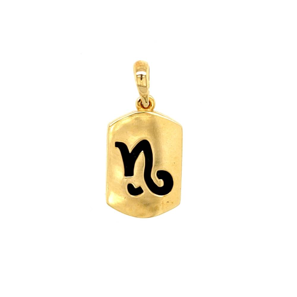 Μενταγιόν Ζώδιο Αιγόκερως σε κίτρινο χρυσό Κ14 (585°) διπλής όψης με Έβενο.