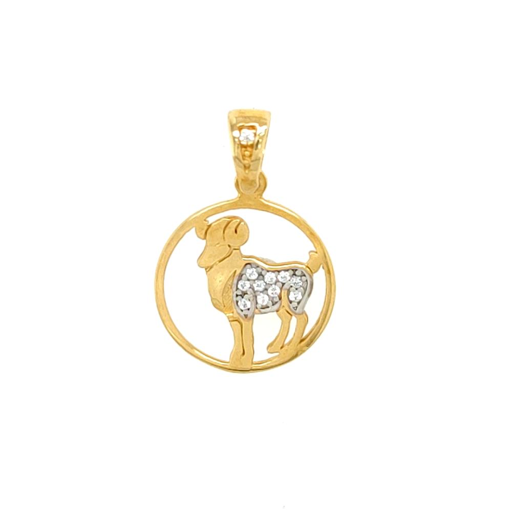 Μενταγιόν Ζώδιο Κριός σε κίτρινο χρυσό Κ14 (585°) με ζιργκόν.