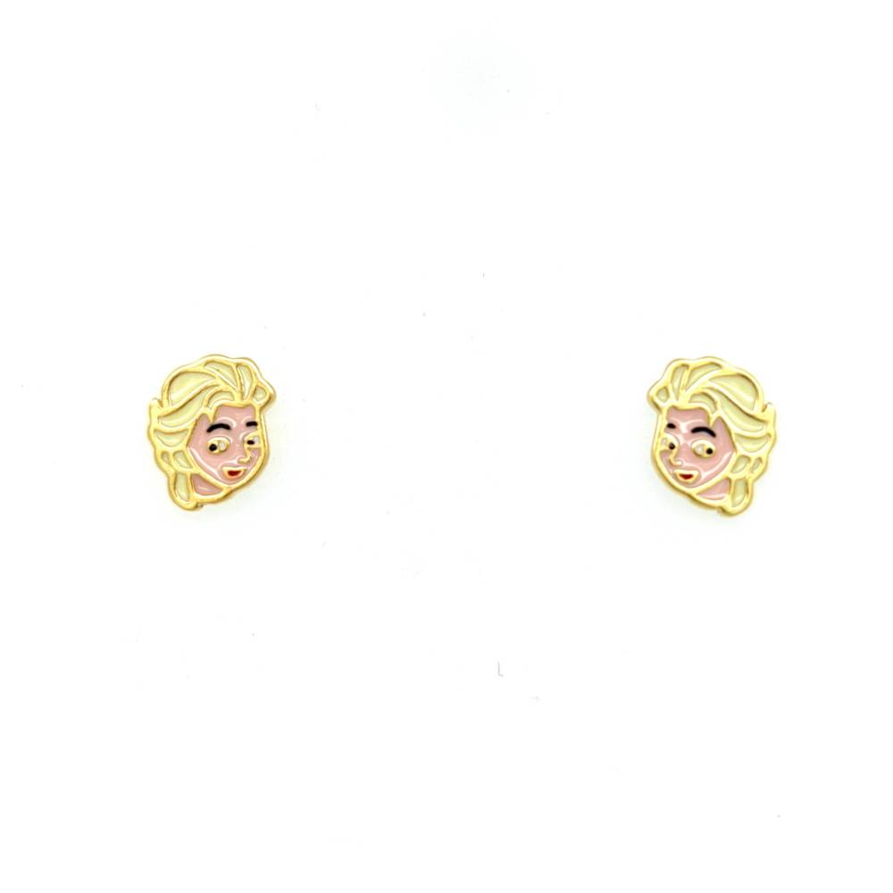 Σκουλαρίκια παιδικά καρφωτά με την βασίλισσα Έλσα από την ταινία της Dinsey Ψυχρά κι Ανάποδα, τα οποία είναι φτιαγμένα από επιχρυσωμένο ασήμι (925°).