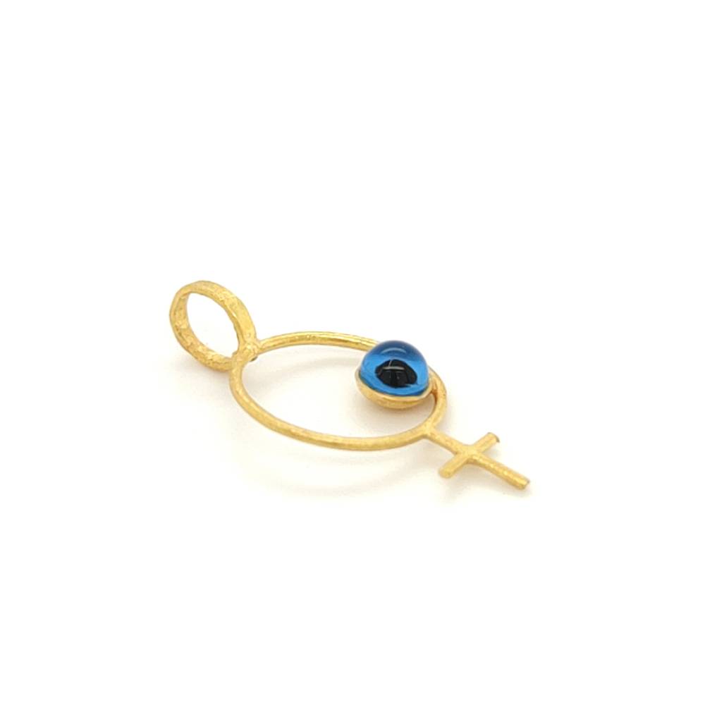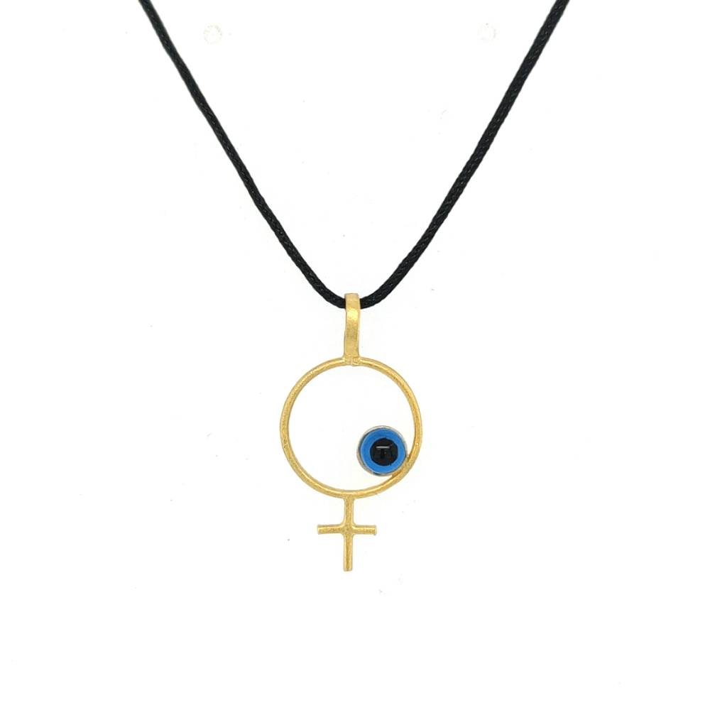 Παιδικό μενταγιόν σύμβολο φύλου θηλυκού με ματάκι μπλε, με μαύρο κορδόνι -Χρυσός Κ9 (375°)-