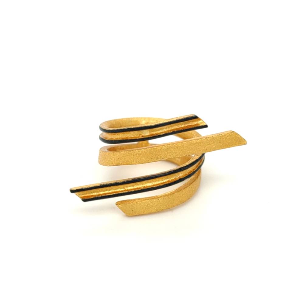 A handmade ring SARINA made of silver (925°). The ring is gold-plated with oxidation. Width 1,7 cm.