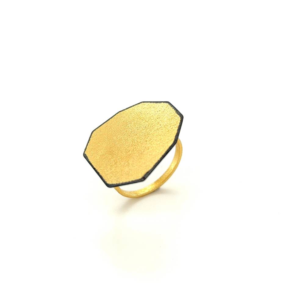 A handmade ring SARINA made of silver (925°), from the collection contrasts. The ring is gold-plated with oxidation.