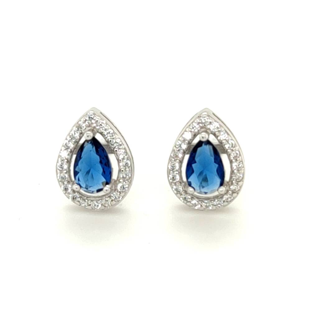 Σκουλαρίκια γυναικεία ροζέτα δάκρυ με μπλε ζιργκόν, ασήμι (925°)