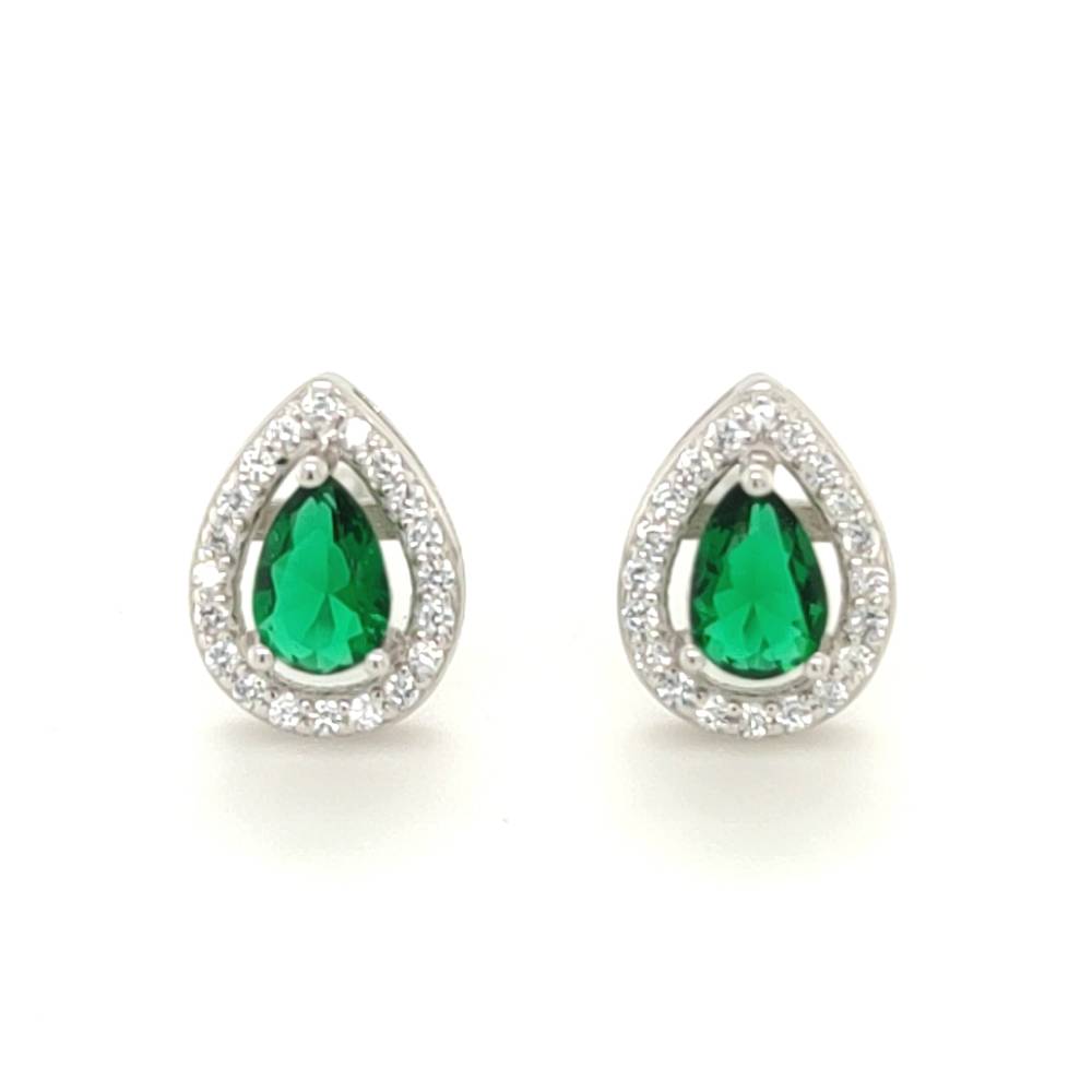 Σκουλαρίκια γυναικεία ροζέτα δάκρυ με πράσινο ζιργκόν, ασήμι (925°)
