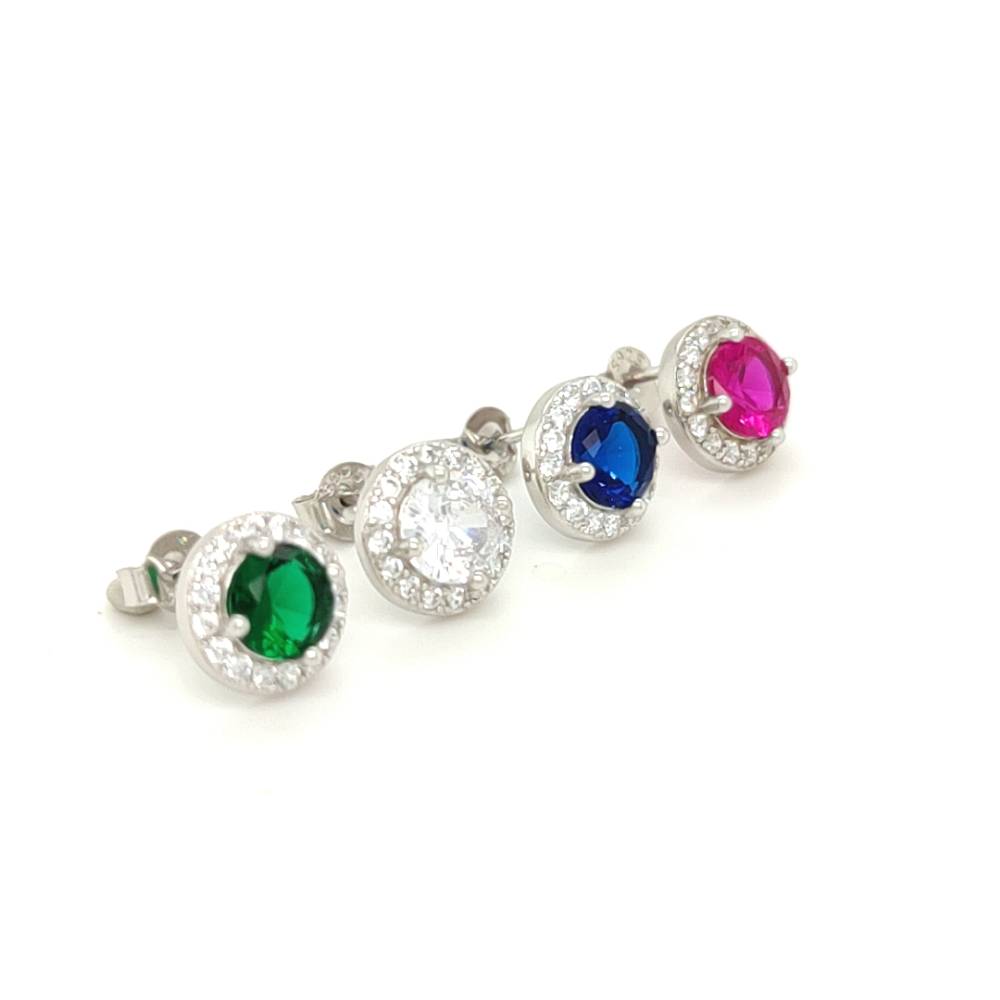 Σκουλαρίκια γυναικεία ροζέτα στρογγυλή με κόκκινο ζιργκόν, ασήμι (925°)