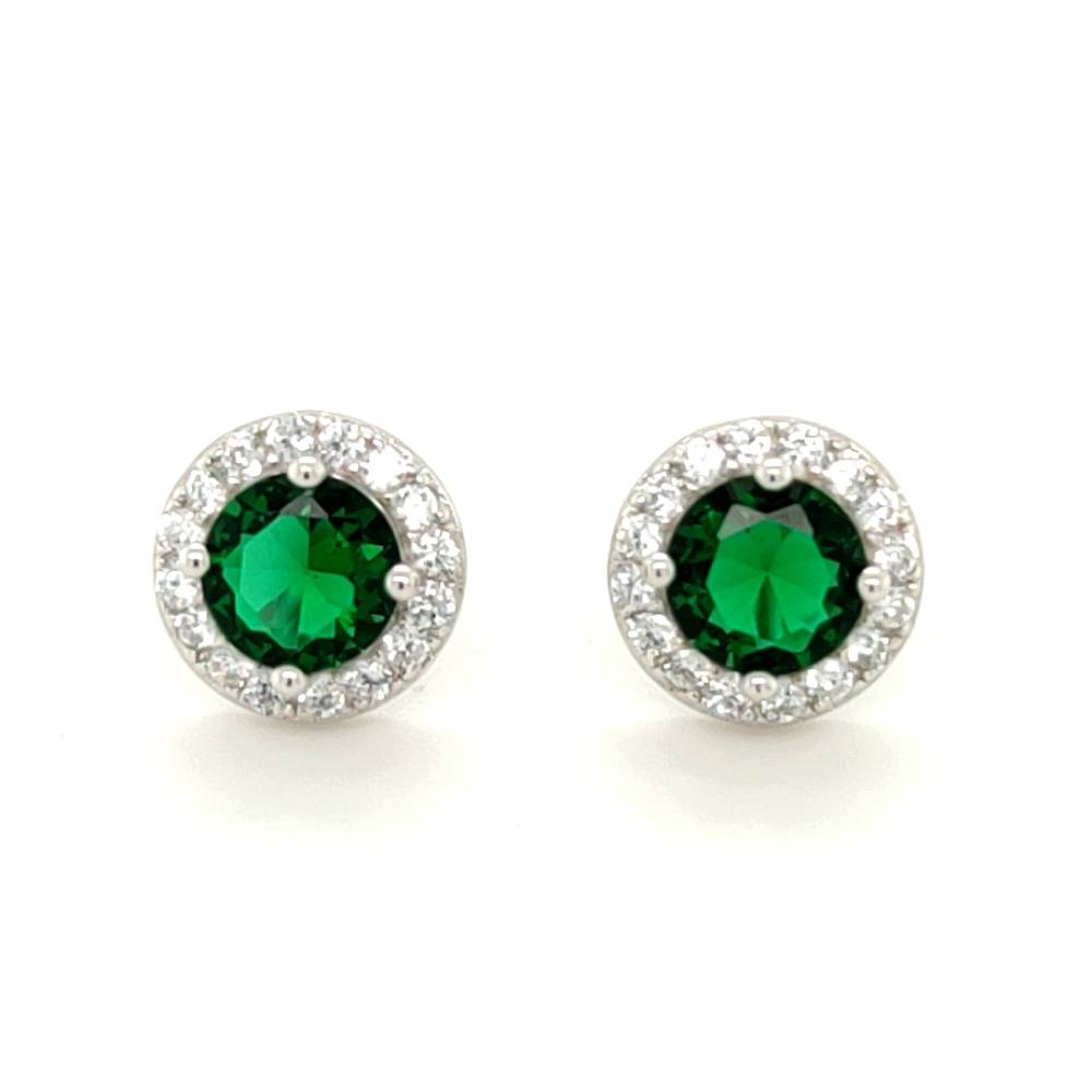 Σκουλαρίκια γυναικεία ροζέτα στρογγυλή με πράσινο ζιργκόν, ασήμι (925°)