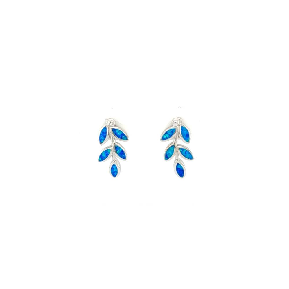 Σκουλαρίκια γυναικεία, ασήμι (925°), Φύλλο ελιάς με τεχνητό opal