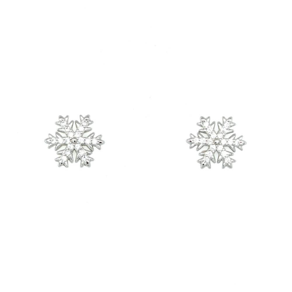 Σκουλαρίκια γυναικεία καρφωτά χιονονιφάδα με ζιργκόν, ασήμι (925°)